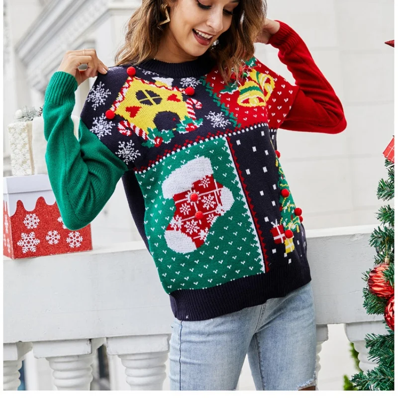 2025 Winter Christmas Women's Sweater Warm Soft Knitwear Female Long Sleeve O Neck Jumper Casual Pullover Top Xmas Look Clothing