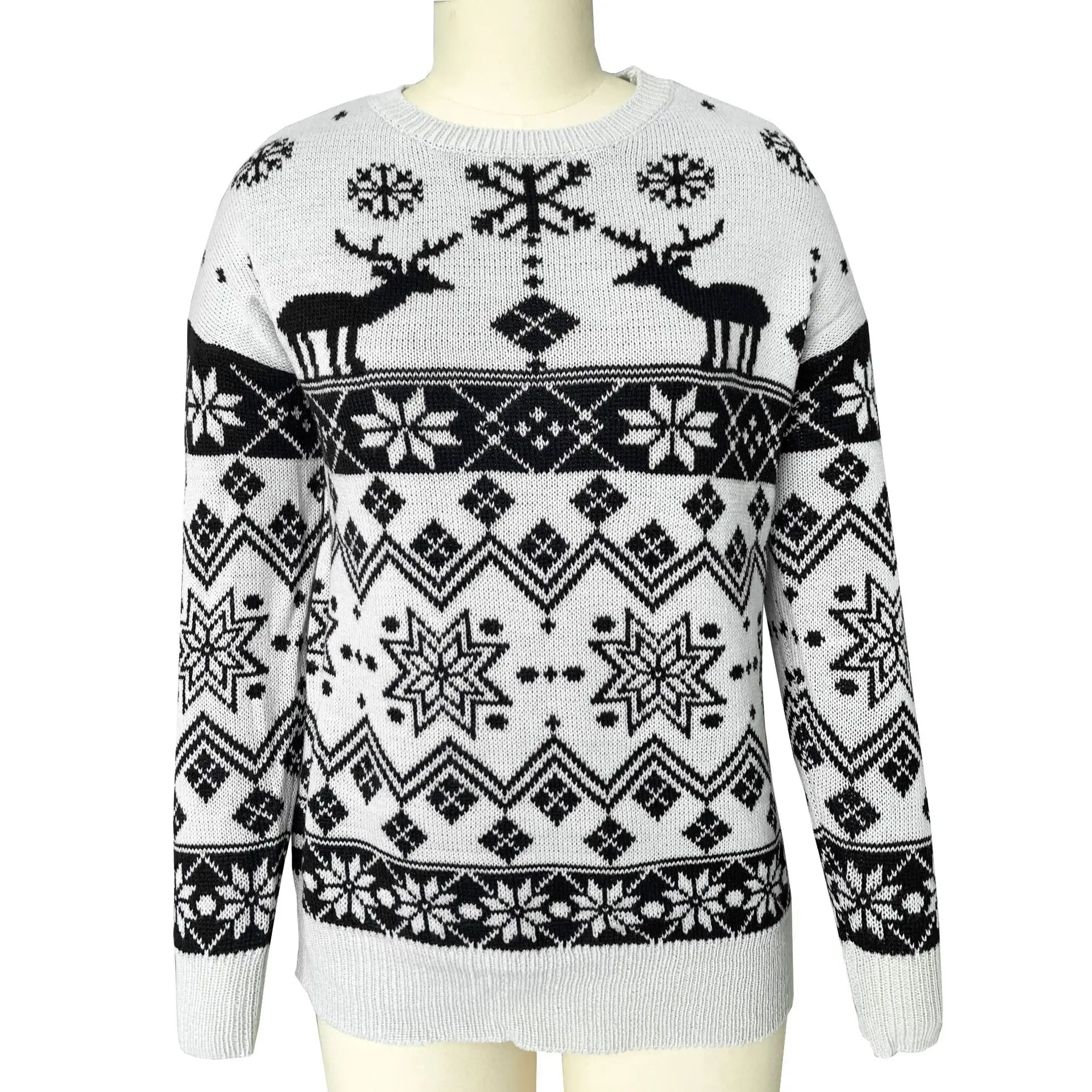 2025 Winter Women's Christmas Sweater Elk Print Knitted Jumpers Full Sleeve O Neck Casual Loose Knitwear Pullover Tops Xmas Look