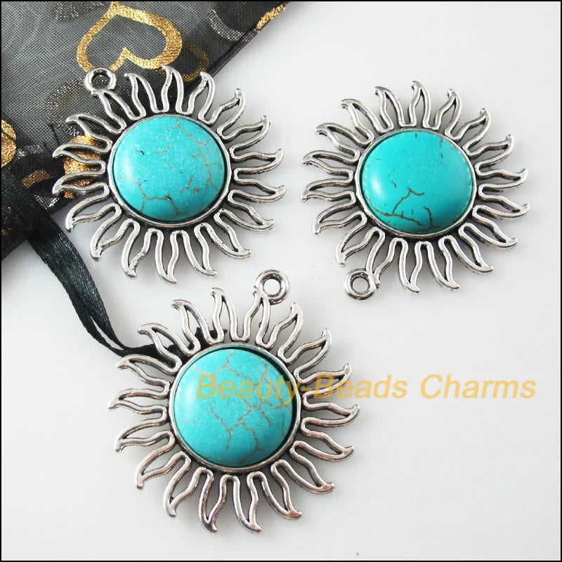 2Pc Retro Tibetan Silver Sun Flower Charms Pendants 42.5x46mm