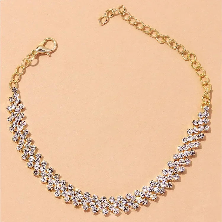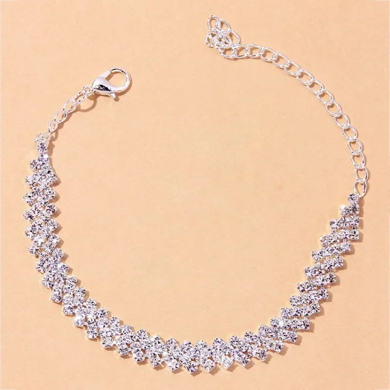 2pcs Shining Cubic Zirconia Chain Anklet for Women Fashion Silver Color Ankle Bracelet Barefoot Sandals Foot Jewelry