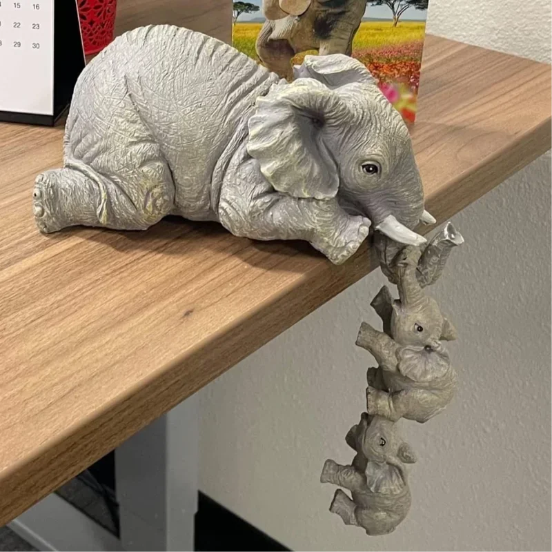 3 pieces/set Creative Elephant Pull Small Elephant Handmade Decoration Resin Home Decoration Cute Lucky Elephant Ornament