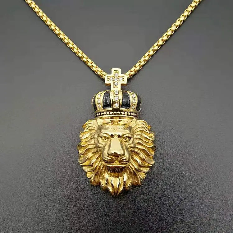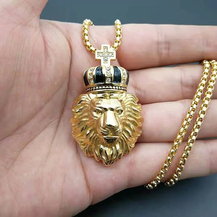 316L Stainless Steel Lion Animal Men crown corss Necklaces Chain Pendants Punk Rock Hip Hop Personality boy Jewelry