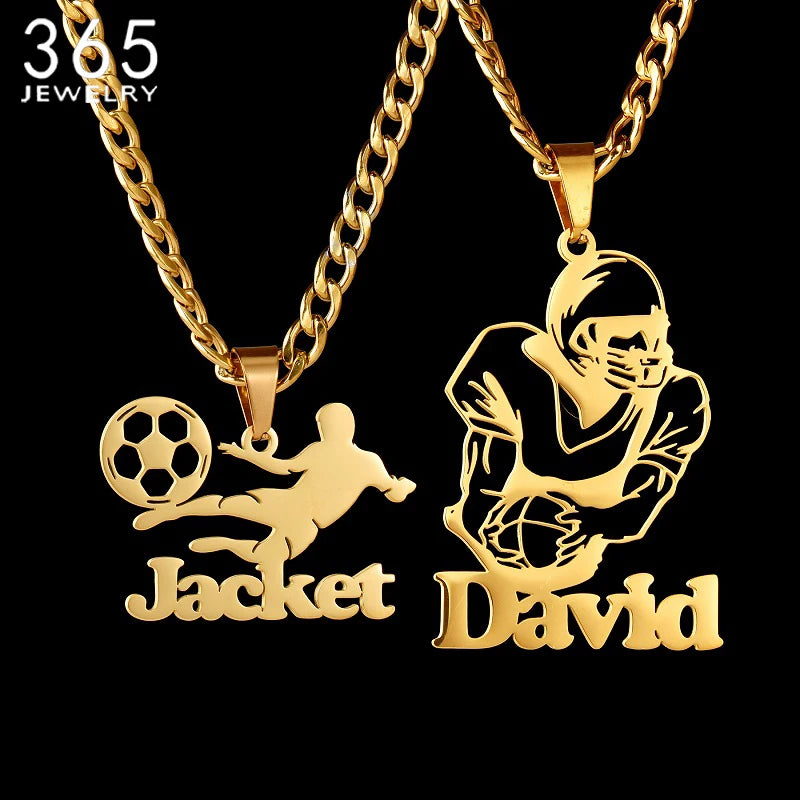 Name:365 New Arrival Custom Name Necklace Personalized Sport Ground Style Nameplate Stainless Steel Jewelry For Men Women Gifts