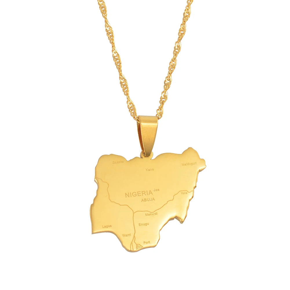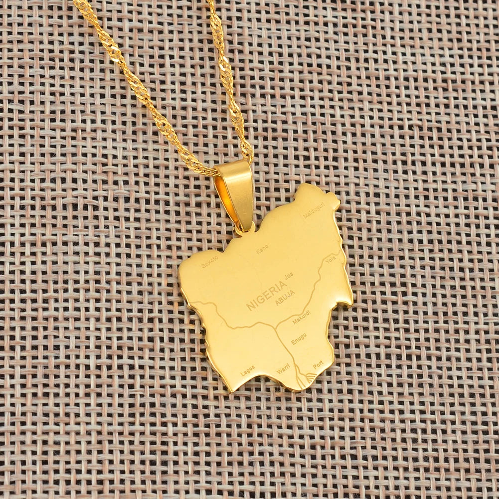 Anniyo Nigeria Map Pendant Necklaces,Country Maps Africa Nigerians Maps With City Name Jewelry @008421