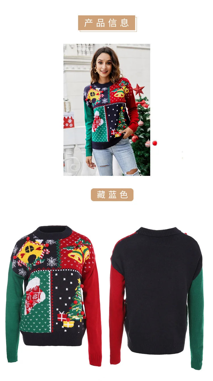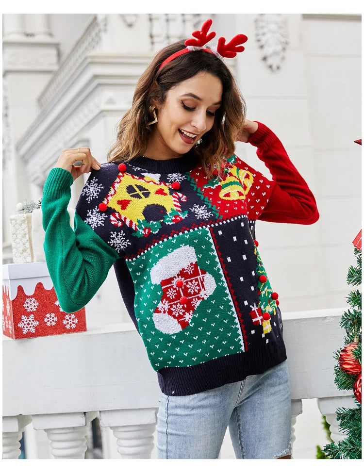 Christmas Sweater Women's Socks Christmas Tree Autumn/Winter New Round Neck Long Sleeve Loose Knitted Sweater 2024 Y2k Cloting