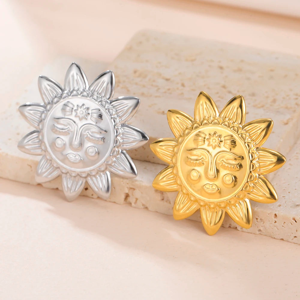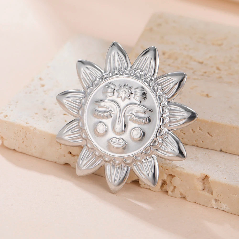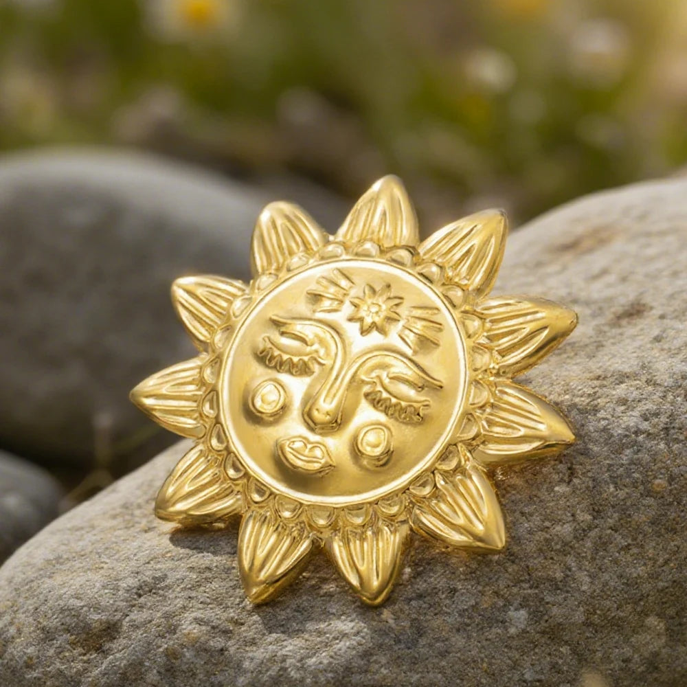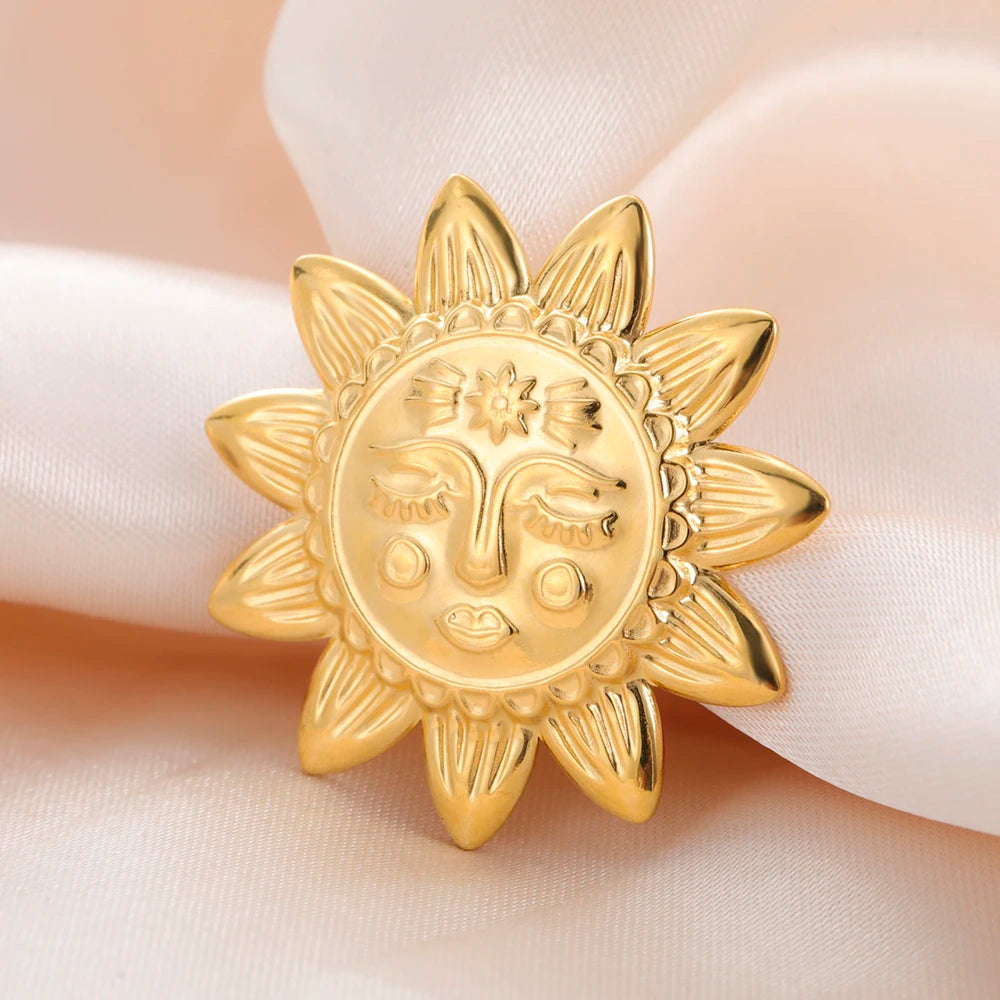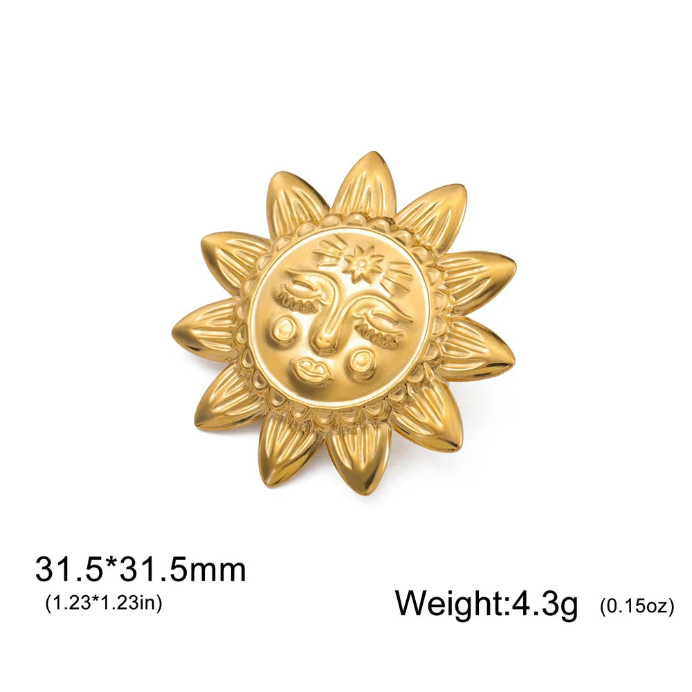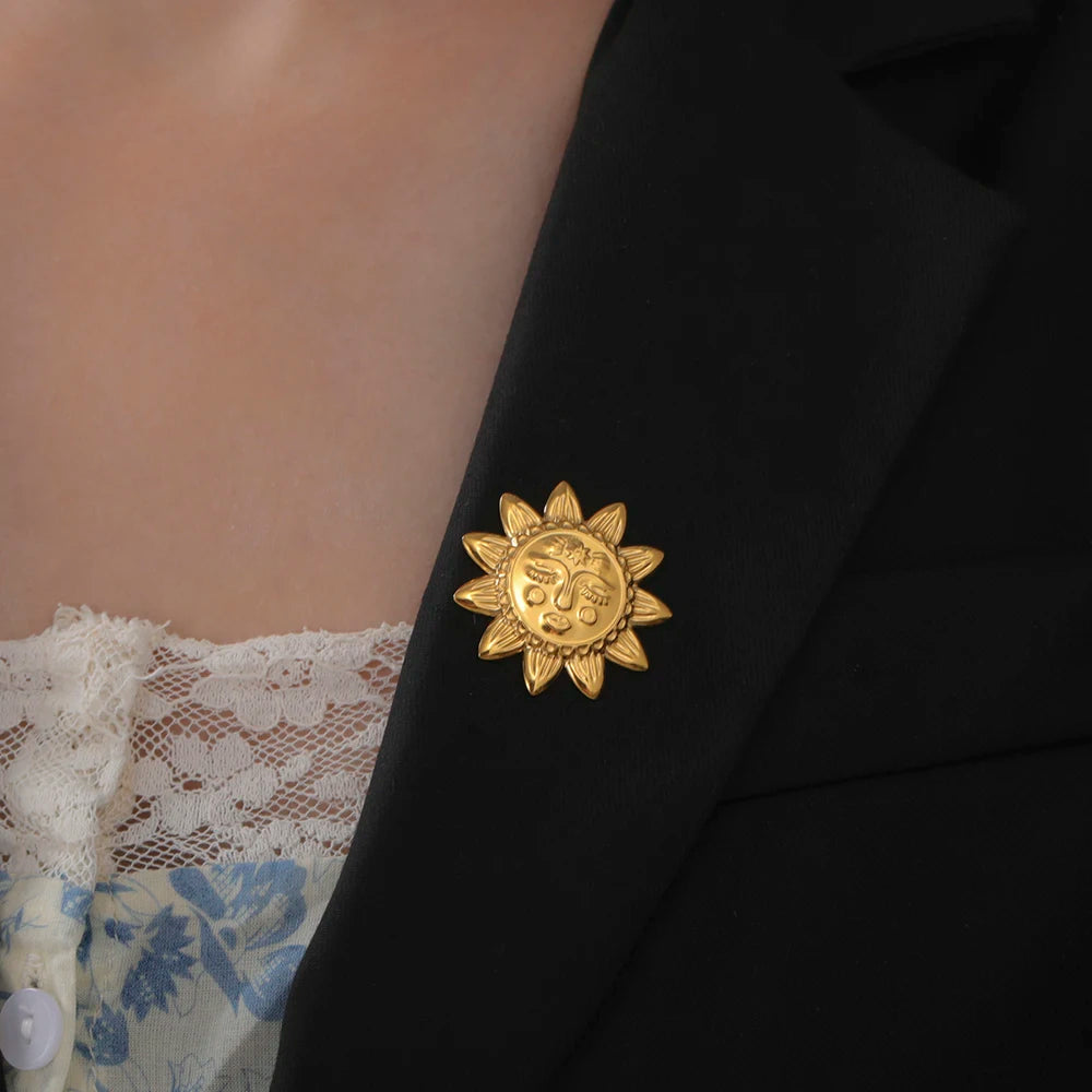 Dawapara Mayan Sun Symbol Brooches Pins Sun Face Maori Style Ancient Totem Aztec Jewelry Stainless Steel Anniversary Gift