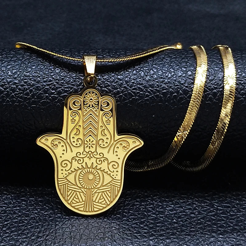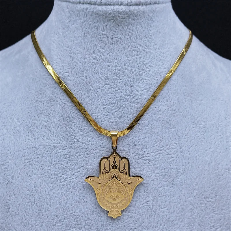 Hamsa Hand Stainless Steel Necklace Gold Color Amulet Hand of Fatima Necklaces Islamic Religious Arabic Jewelry mano de fatima