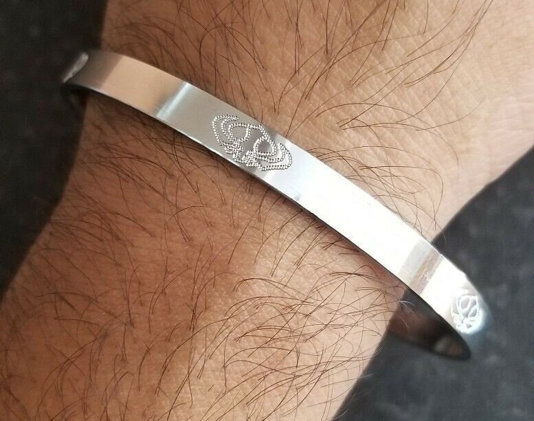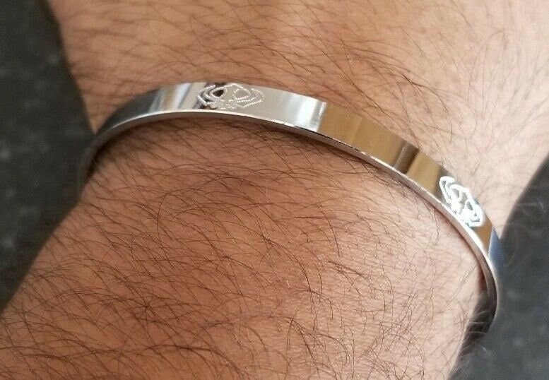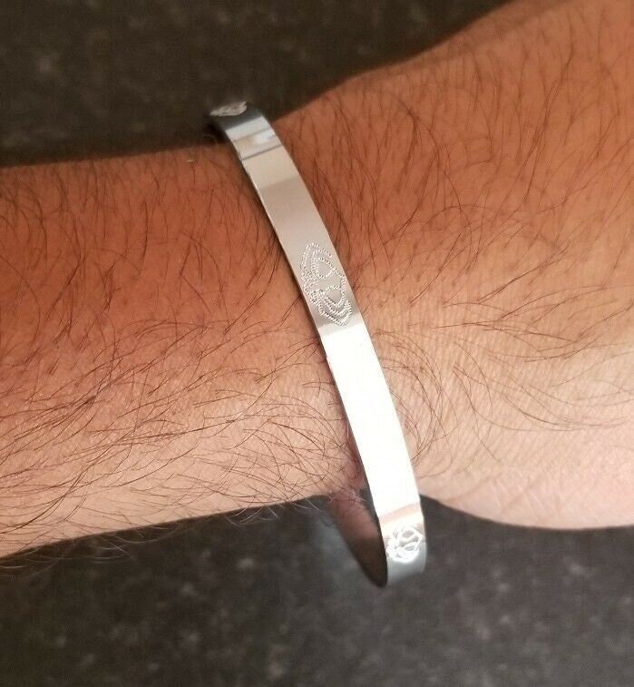 NEW Silver Plated Laser Engraved Khandas Sikh Singh Khalsa Kara Bangle Kada D10- Sikh Bracelet