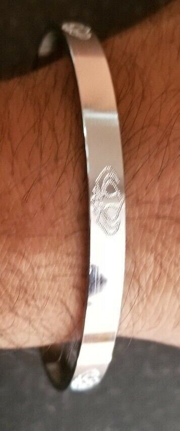 New silver plated laser engraved khandas sikh singh khalsa kara bangle kada d10