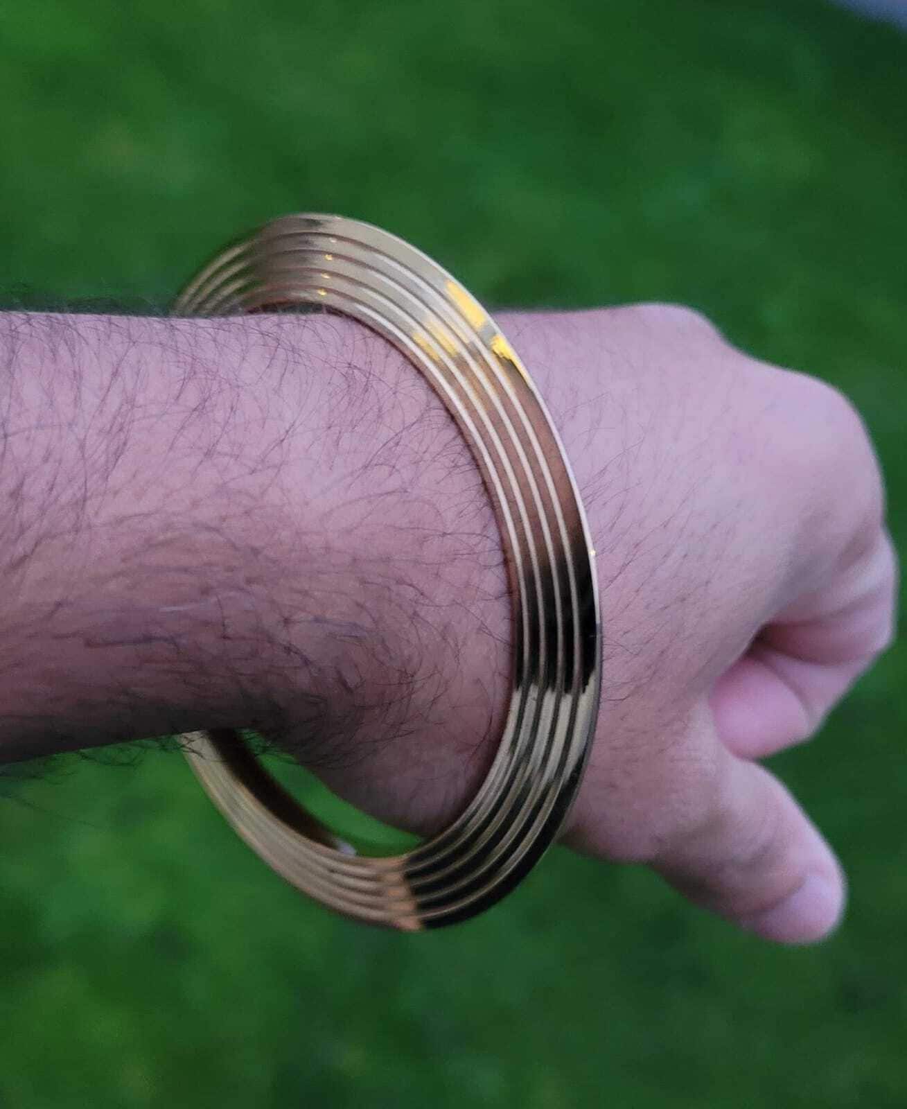 Sikh Kara Brass Chakri Singh Kaur Lines Design Punjabi Gold Look Kada Bangle