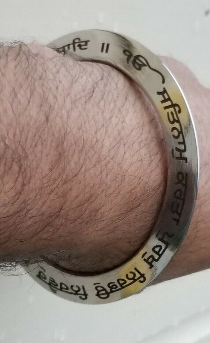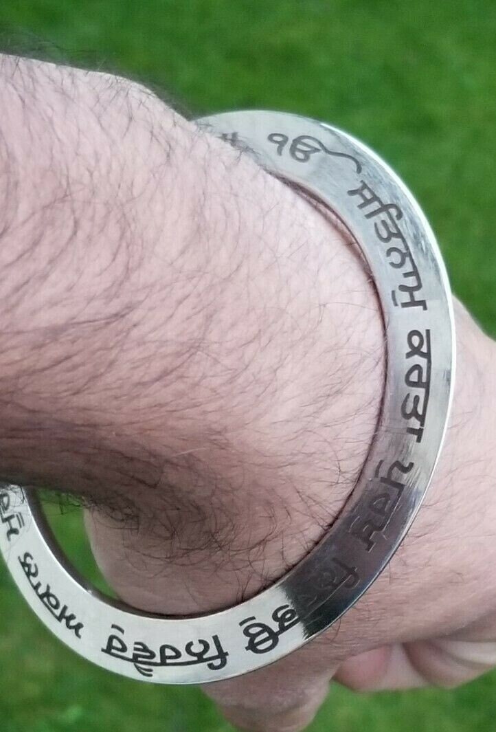 Mool Mantar Bani is beautifully engraved by Laser on both sides of this kara as shown in photos - non allergic to skin.