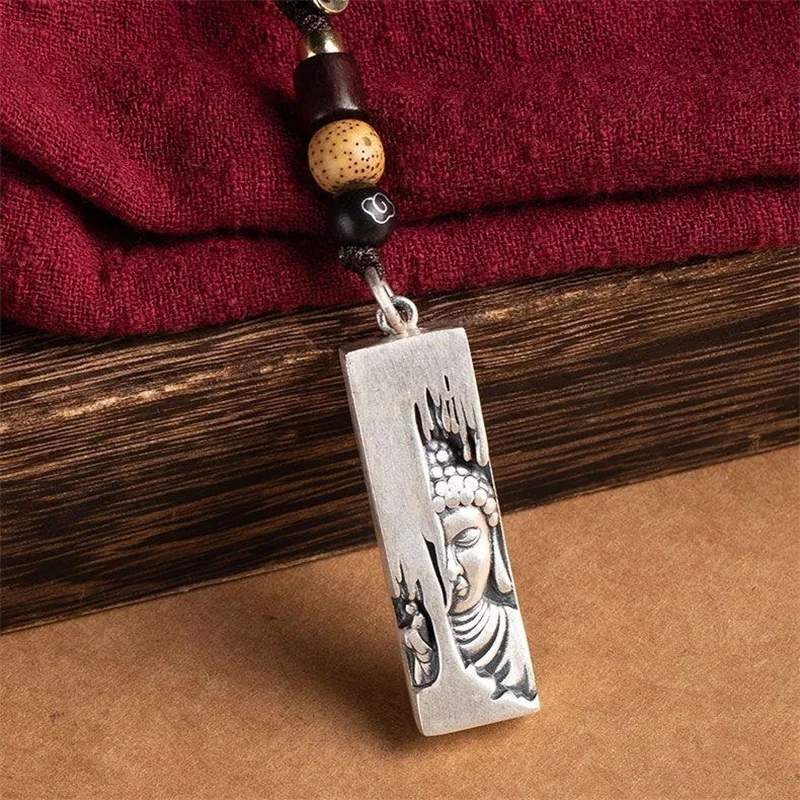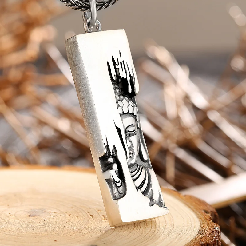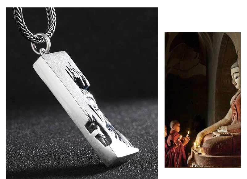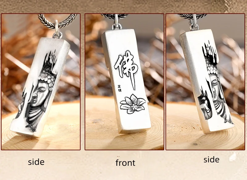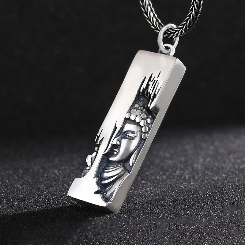Tathagata Buddha Pendant Men Jewelry Vintage Silver 925 Chain Necklaces Male Retro Lotus Half-faced Buddha Necklace For Women