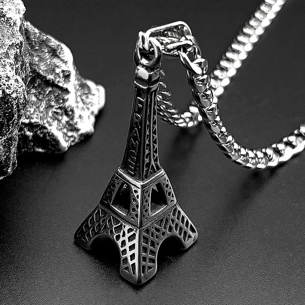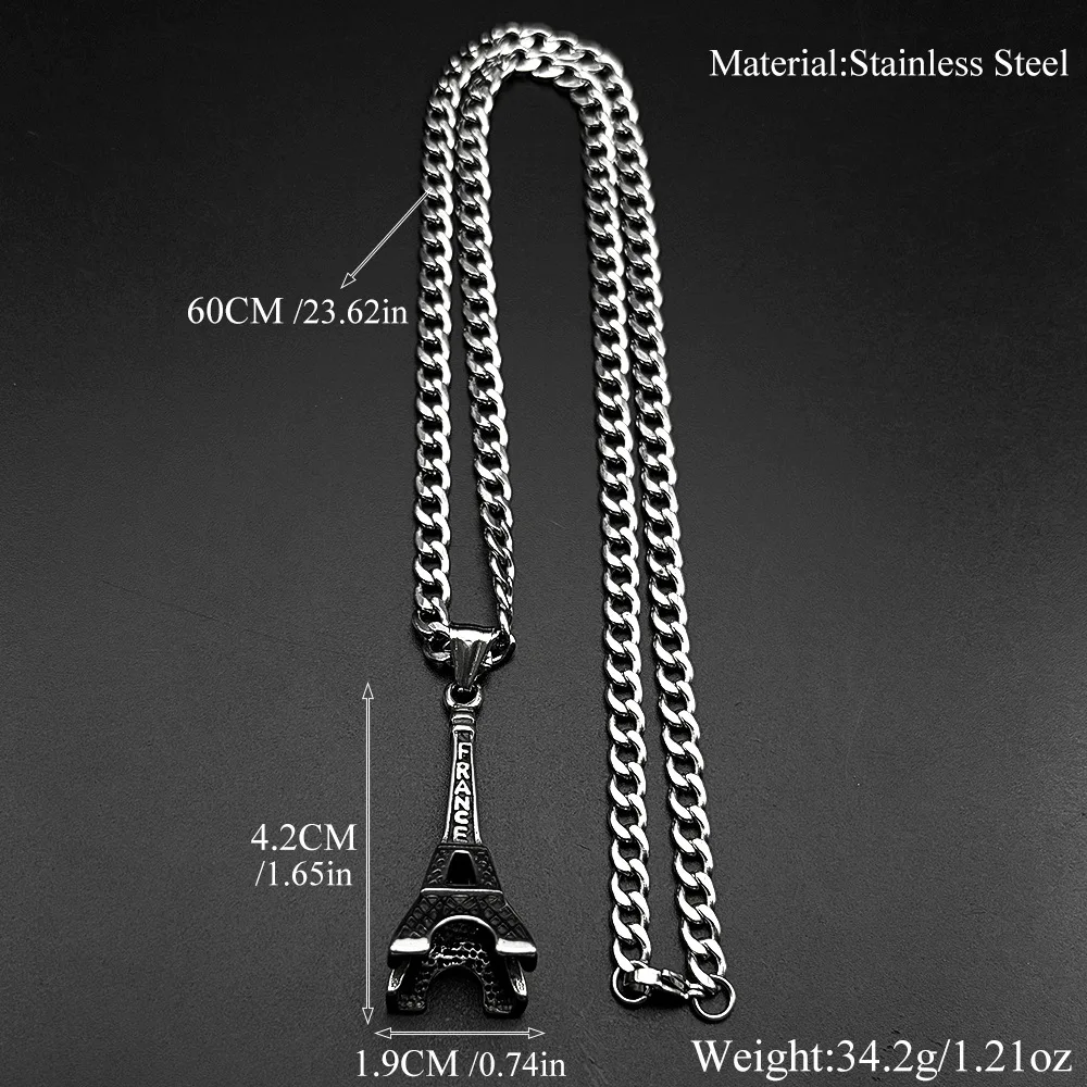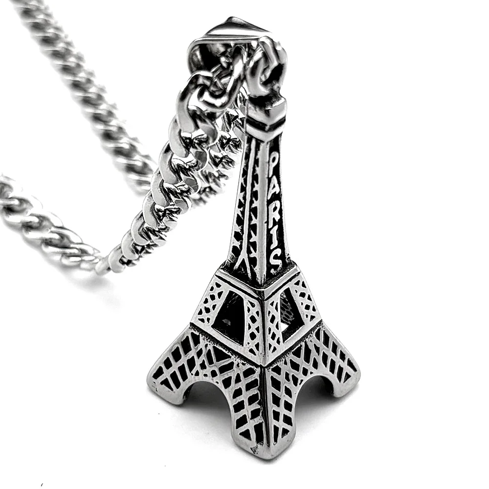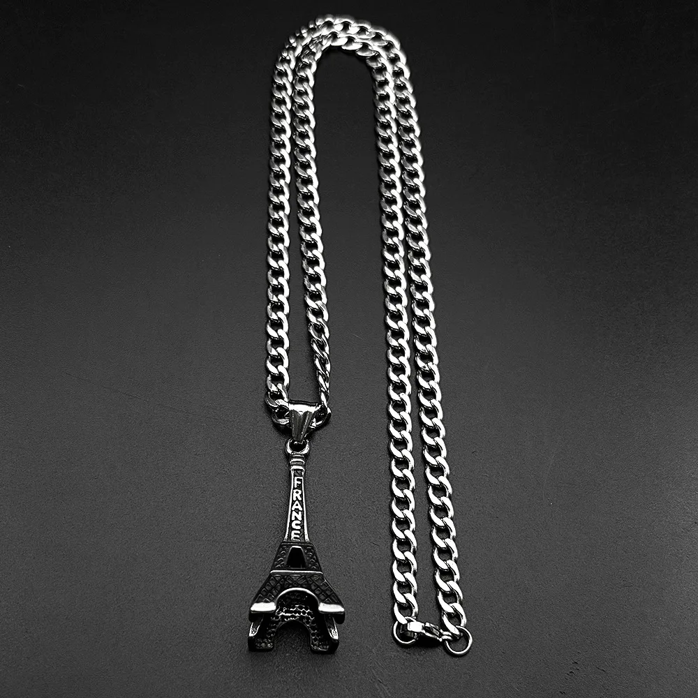 The new iconic Eiffel Tower Instagram fashion men's simple clothing paired with accessories, hip-hop pendants and sweater chains