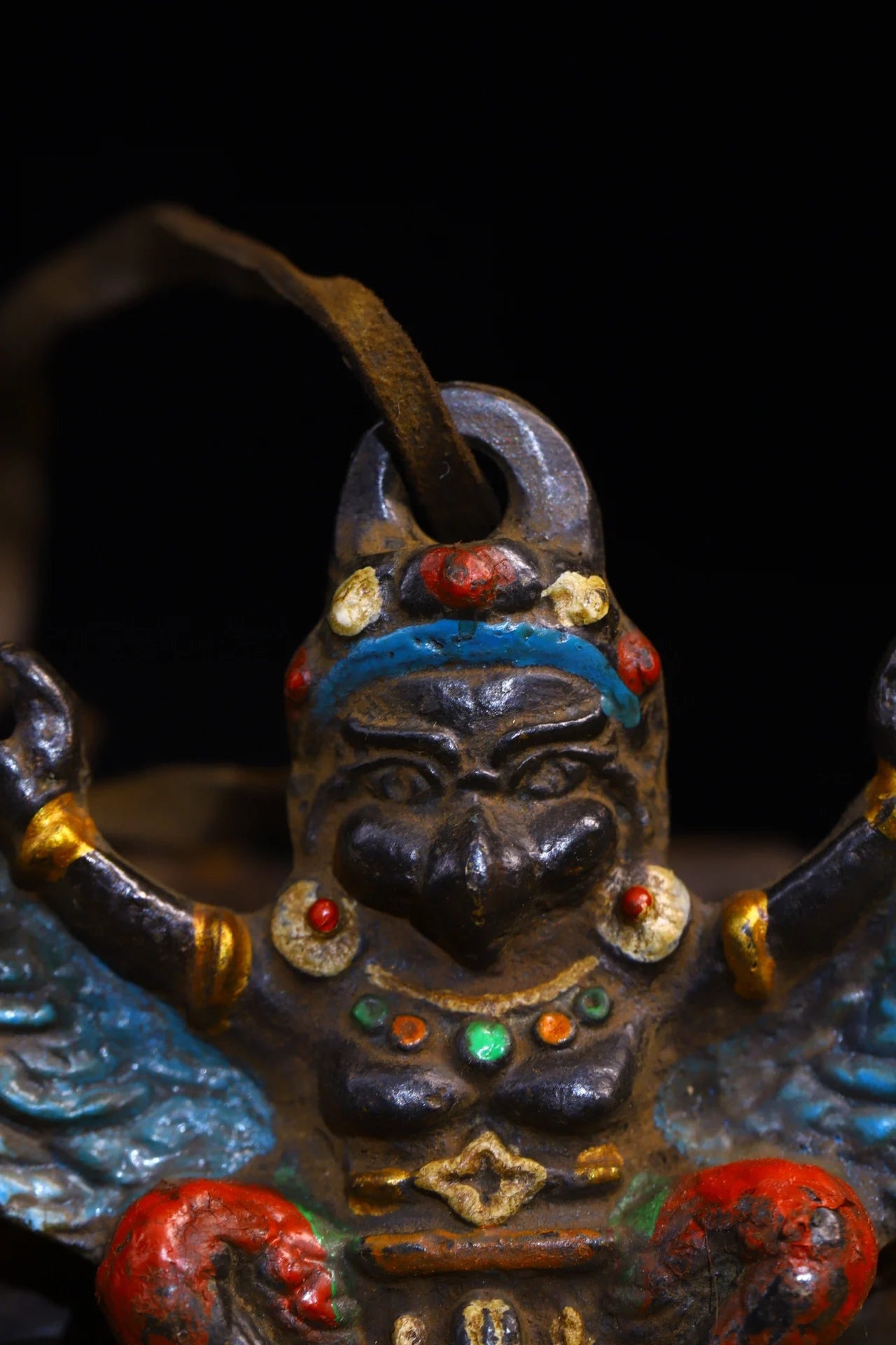 Tibet Temple Collection Old Natural meteorite Filigree mosaic gem Dzi Bead Roc garuda statue Pendant amulet Town House #2