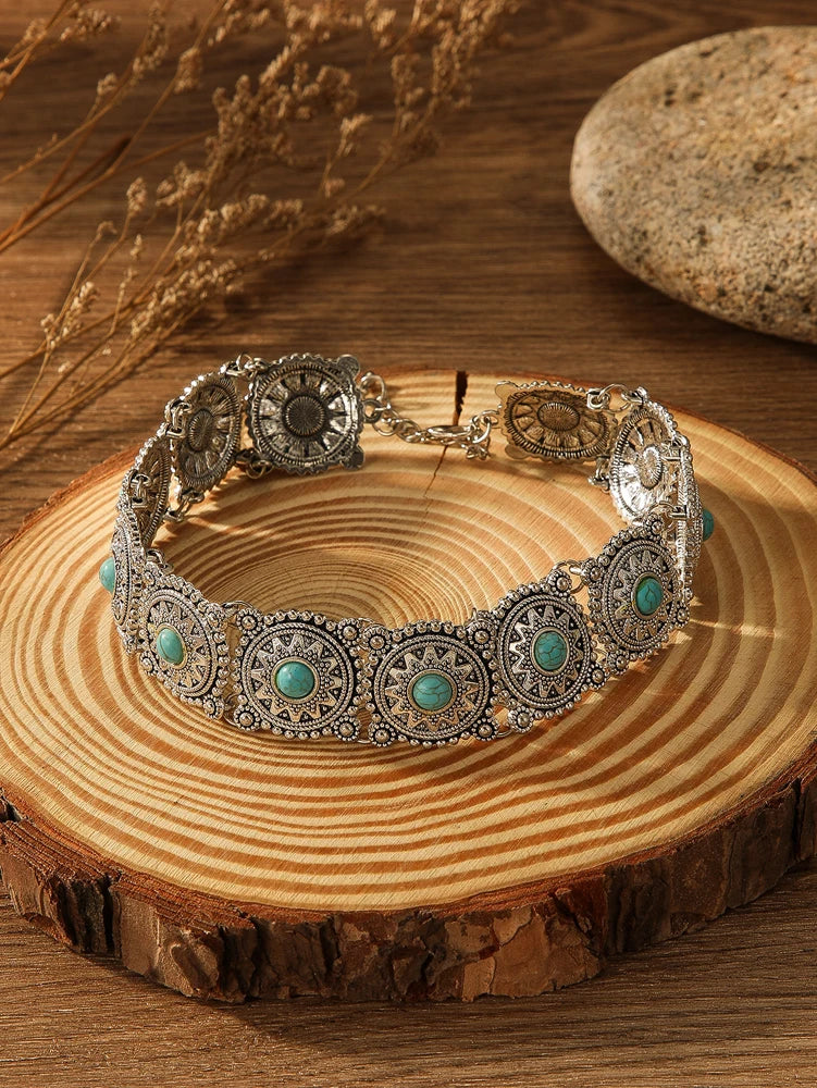 PRODUCT:Vintage Alloy Carved Sun Pattern Choker Necklace for Women Traditional Boho Ethnic Round Collar Necklaces Statement Jewelry Gift