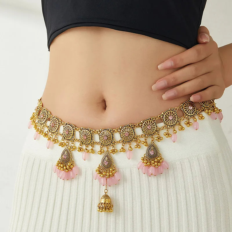 Vintage Belly Chain For Women Resin Beads Bell Pendant Body Jewelry Ethnic Handmade Women's Jewelry Gift Festive Party Favor