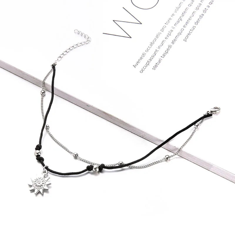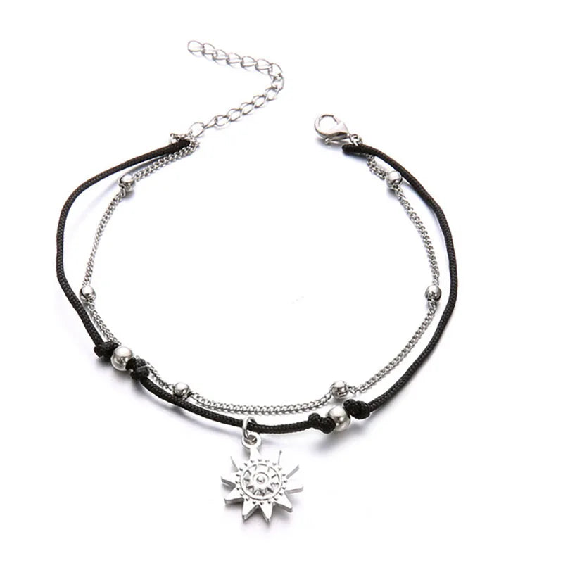 Vintage Boho Multi Layer Beads Anklets For Women Fashion Sun Pendent Anklet Handmade Chain Foot Party Jewelry Leg Bracelet