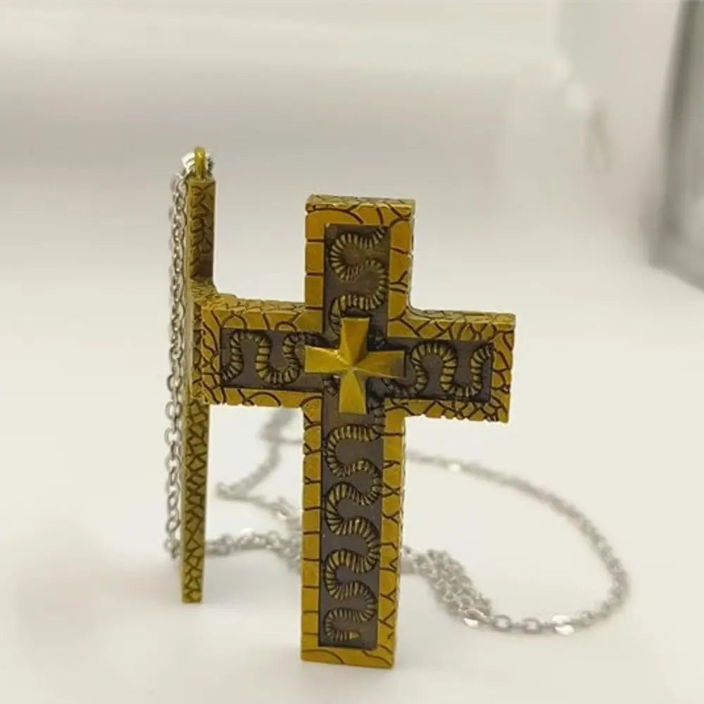 Vintage Cross Pendant Necklace with Secret Compartment Cross Necklace 3D Printed Charm Jewelry Necklace for Women Men