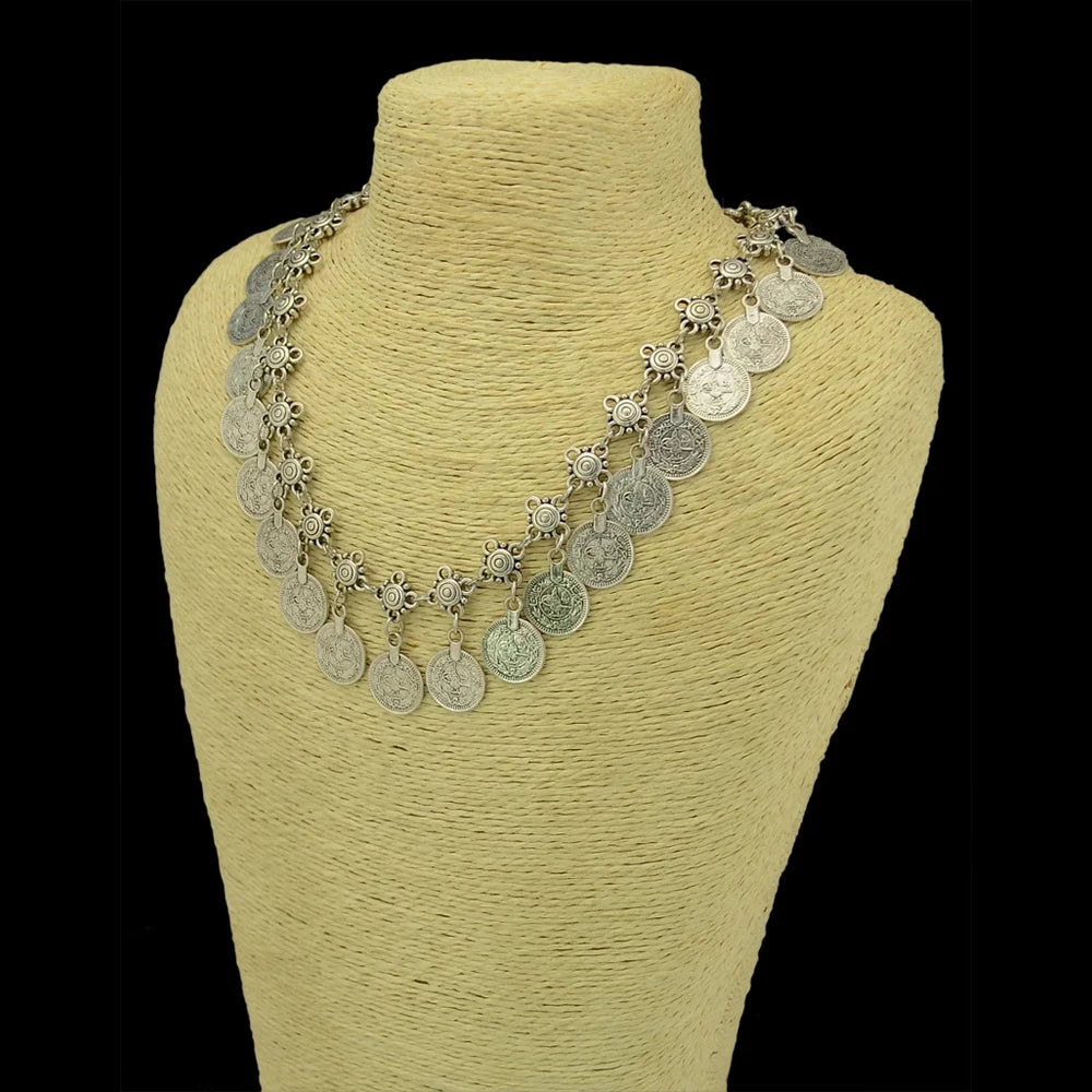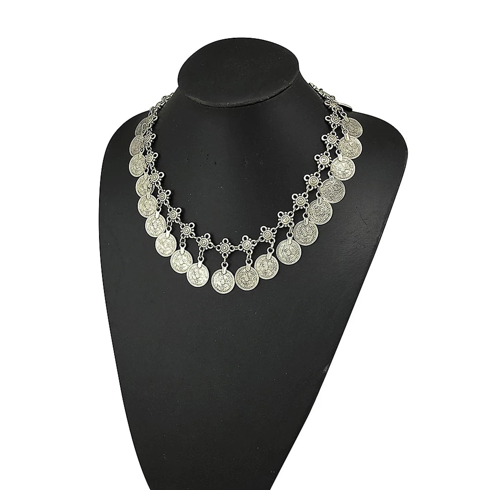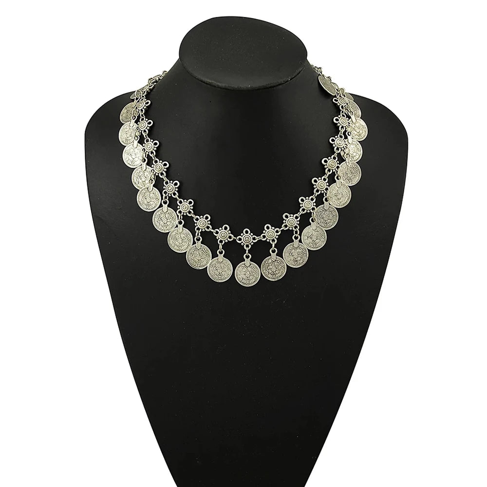Gypsy Tribal Boho Ethnic Necklace: Vintage Coins Necklace