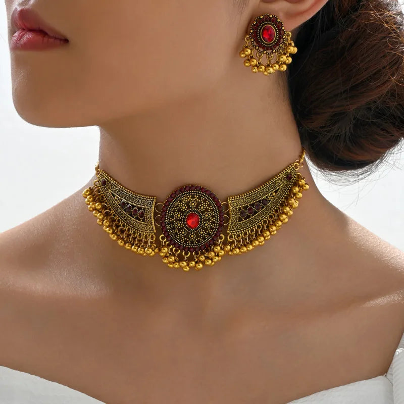 Vintage Jewelry Set Rhinestone Choker Necklaces Stud Earrings For Women Simulated Pearl Beads Bridal Jewelry Sets