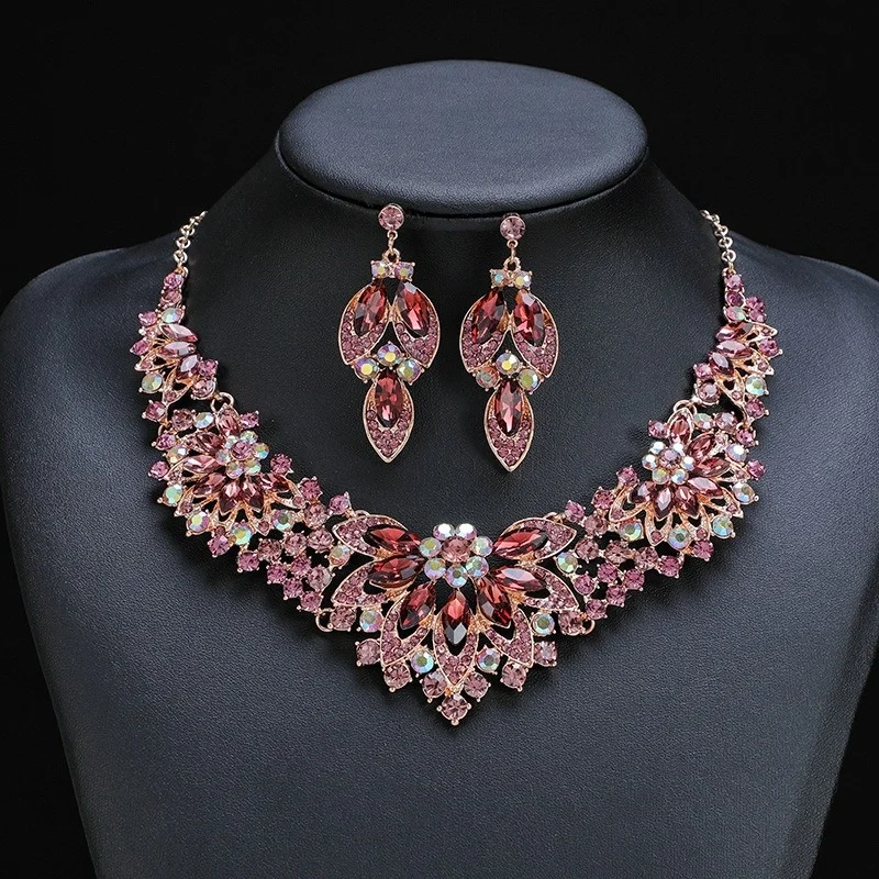 Vintage Necklace Set Women's 2-piece Set Leaves Flowers Exaggerated Bridal Accessories