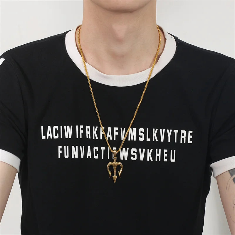 Vintage Neptune Poseidon Trident Pendant Necklace Ancient Greece Amulet Necklace Men Jewelry Gift for Sailor Unisex Jewelry