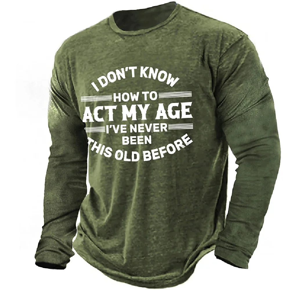 Vintage T-Shirts For Mens Print Cotton Long Sleeve T Shirt Overzied Fashion Clothes Streetwear Casual Top Tee Shirt Men Clothing