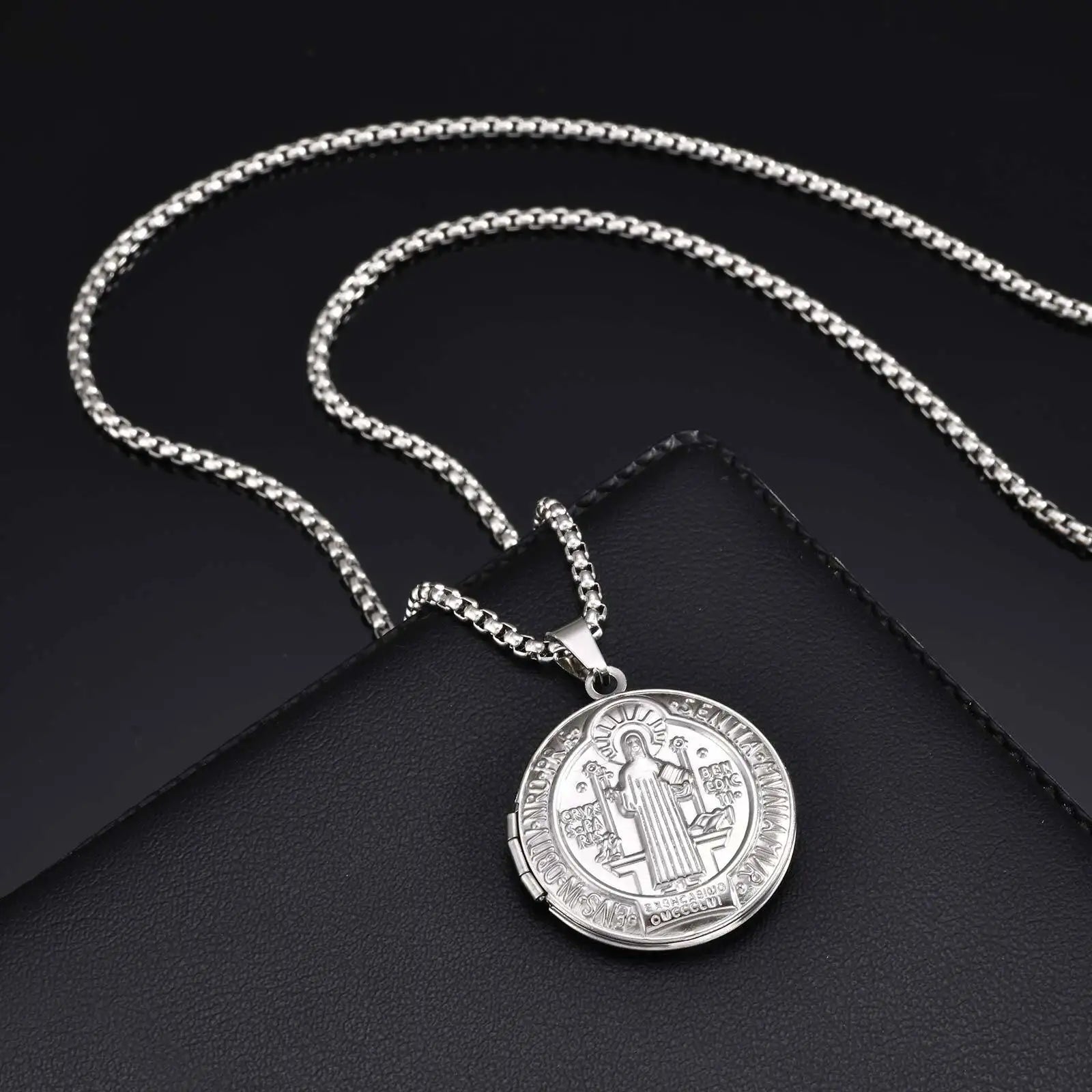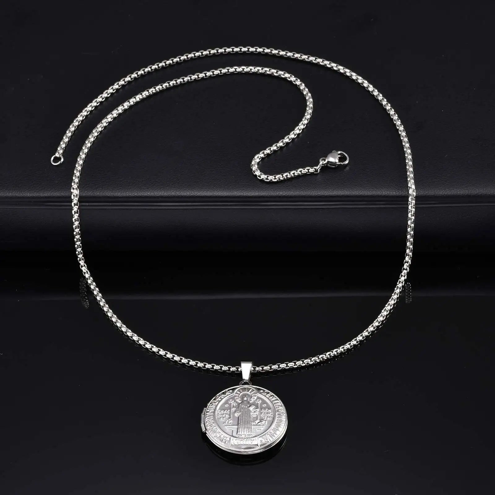 Vnox Stainless Steel Free Photo Custom Necklace For Women Men,Can Open Round Photo Box Pendent,Jewelry Gifts To Husband Wife
