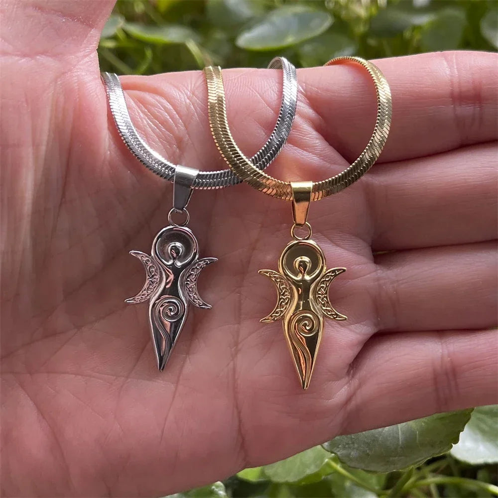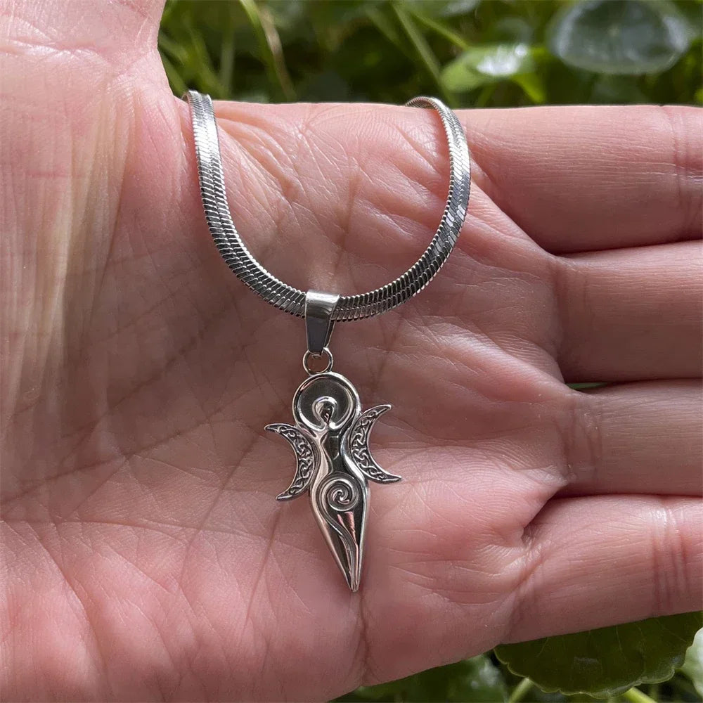 Witch Triple Moon Goddess Hecate Necklace for Women Men Stainless Steel Greek Mythology Amulet Chain Jewelry collier