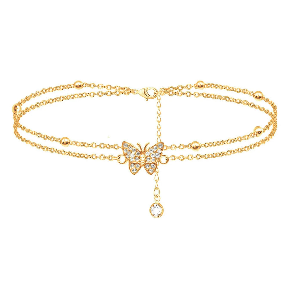 Women's Charm Metal Pearl Anklet Golden Multilayer Foot Chain Bohemia Fashion Rhinestone Ankle Bracelet Beach Jewelry Accessory
