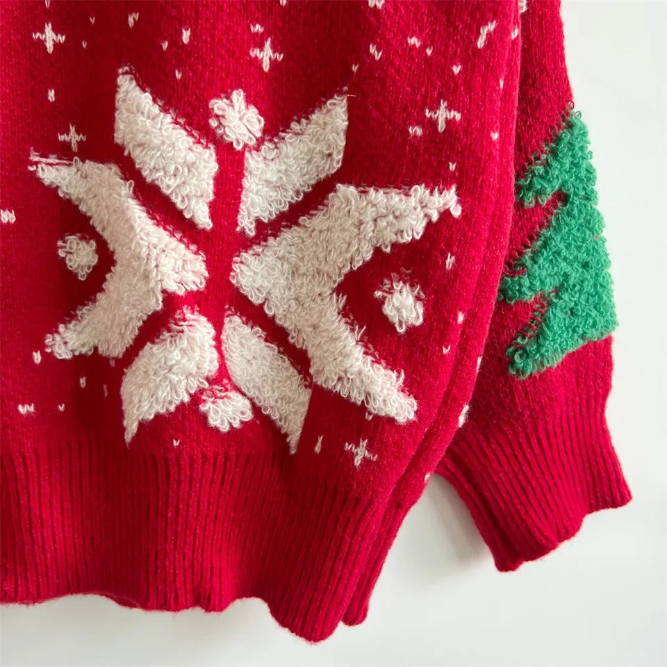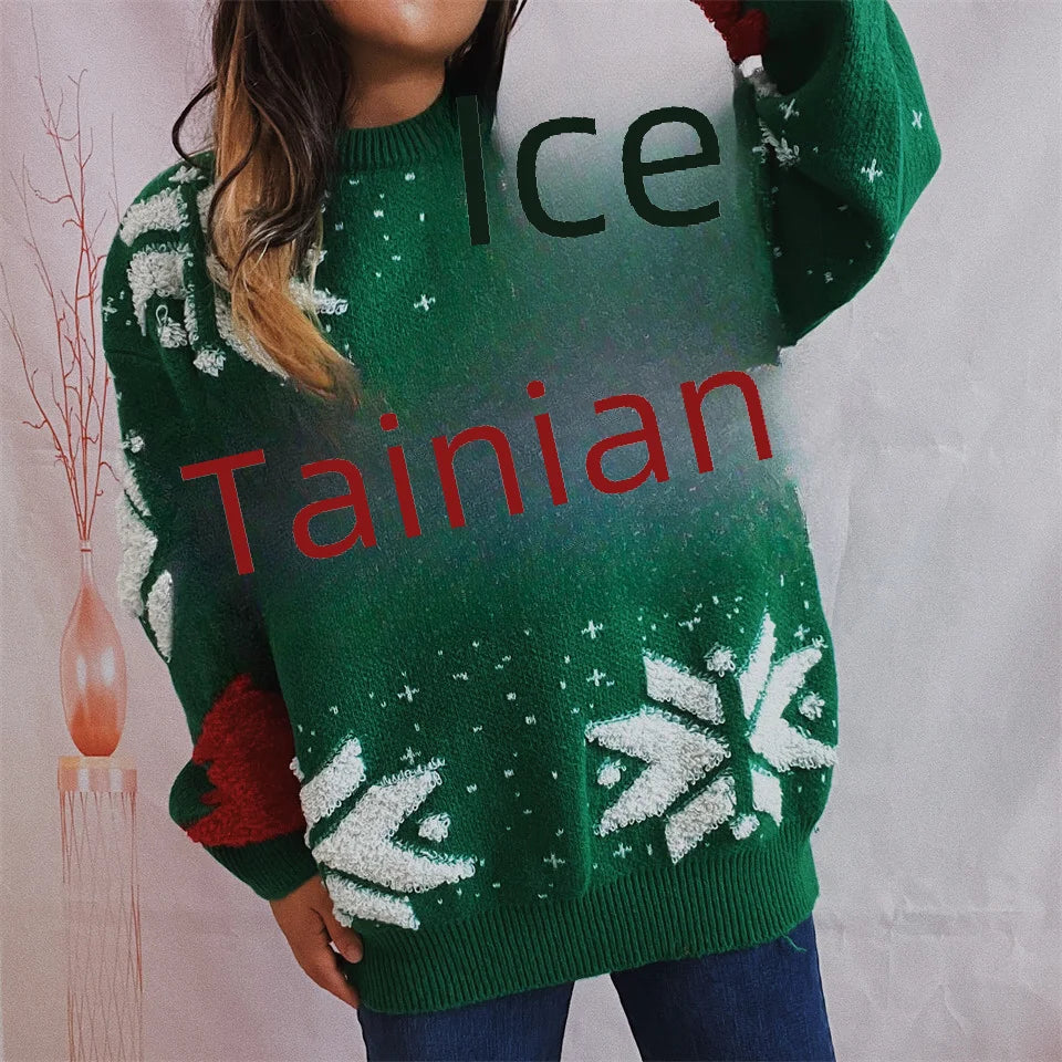 • Thickened Knitted Pullover :This women's Christmas sweater features a thickened knitted pullover design, perfect for providing warmth and comfort during the autumn and winter seasons.