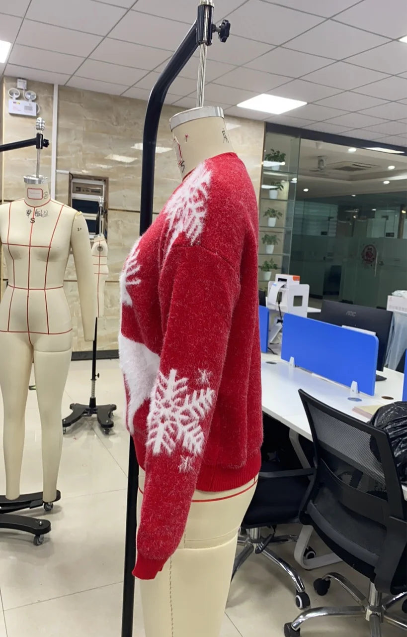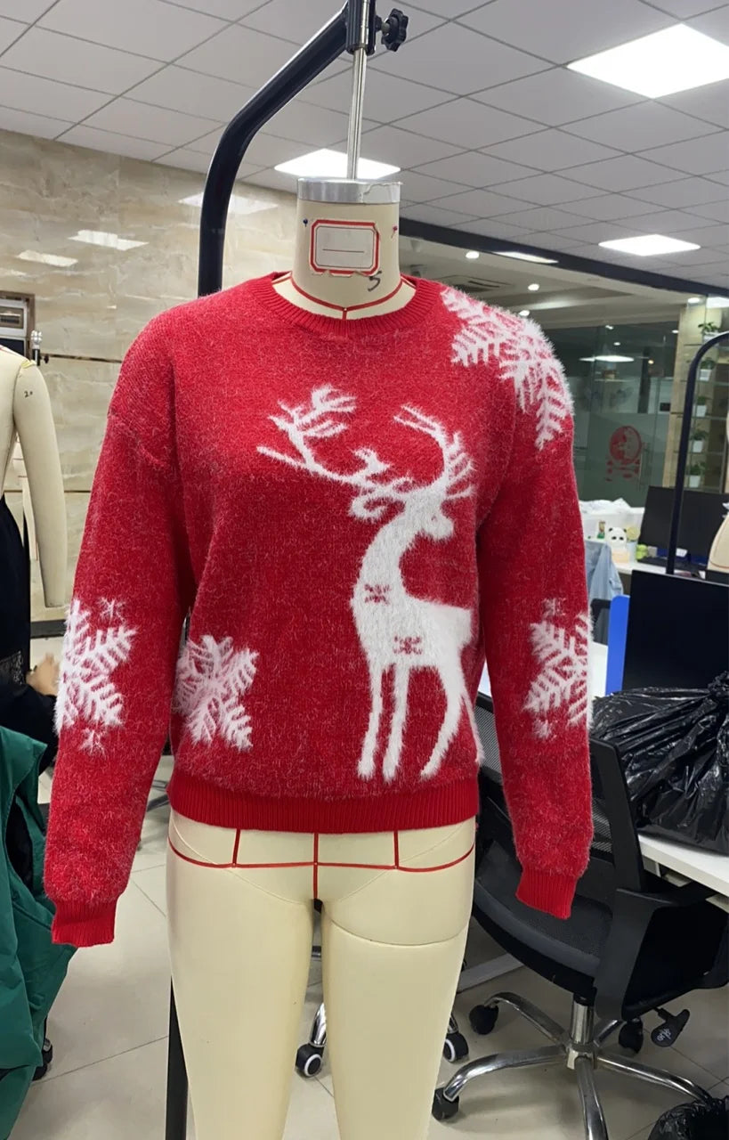 Women's Reindeer Sweater Tops Fashion Christmas Casual Crew Neck Long Sleeve Knit Tops Autumn Winter Festival Pullovers