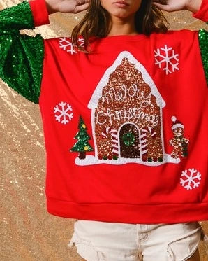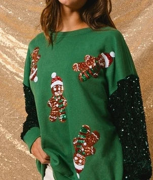 women's winter sweaters Sweatshirt sequined Christmas gingerbread cartoon pattern O-neck sequined long sleeved knitted pullover