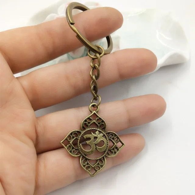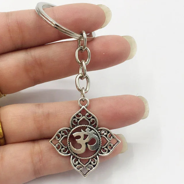 XKXLHJ 1Pcs Filigree Cute keychain OHM OM AUM Buddha Lotus Keychain Pendant , Buddhist, Yoga Keychain