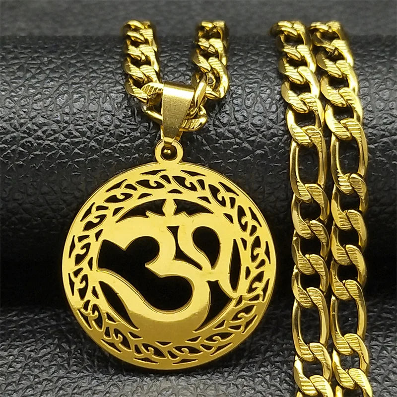 - Yoga Pendant Necklaces For Men Women Gold Color Stainless Steel OHM Hindu Buddhist AUM OM Hip Hop Chain Jewelry Gift