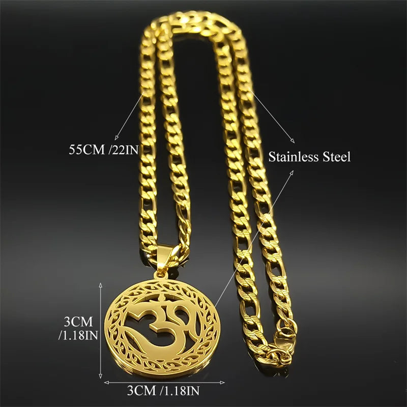 Men Women Gold Color Stainless Steel OHM Hindu Buddhist AUM OM Hip Hop Chain Jewelry Gift