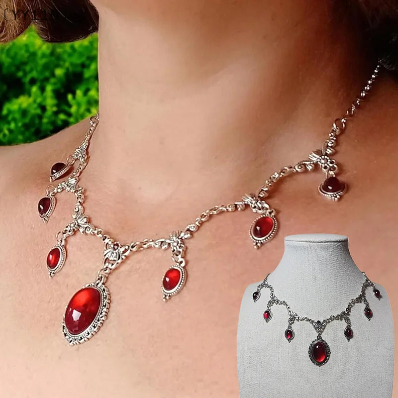 Red Gem: Set with red gemstones, simulating the rich color tone of vampire gemstones, reflecting a dark luster in low light.